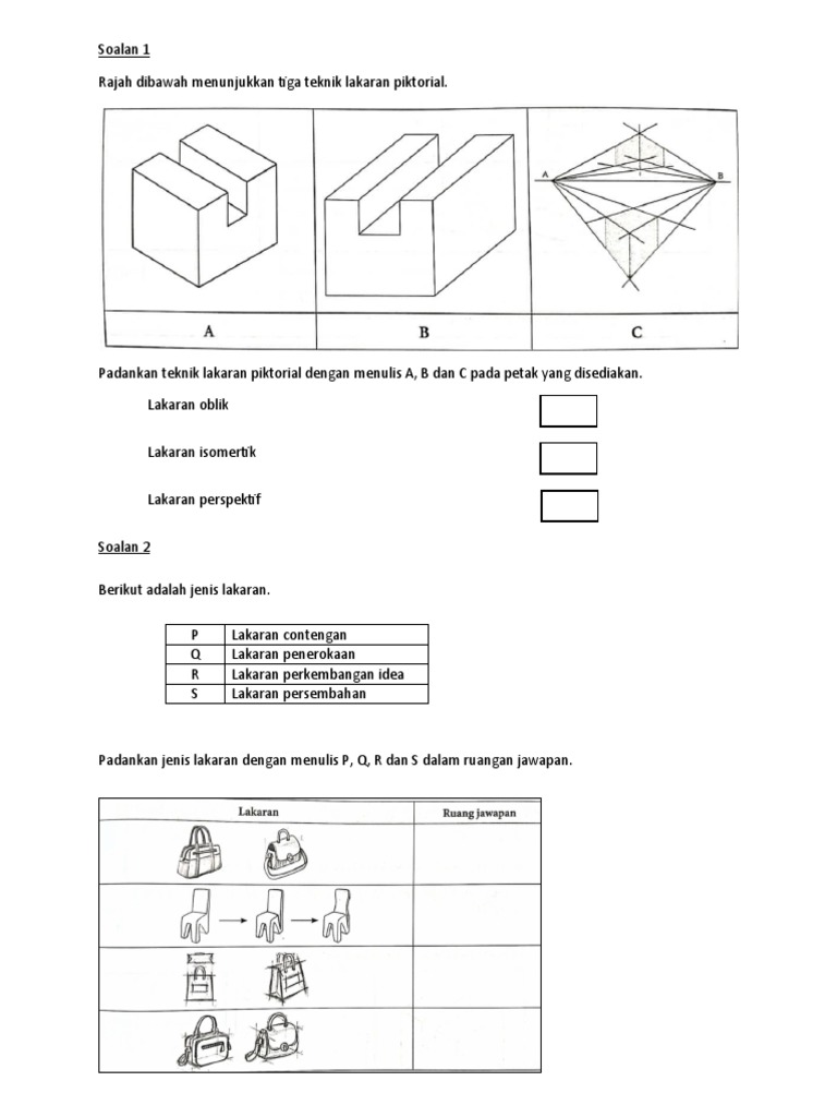 Komputer Lakaran Oblik Lakaran Isometrik Lakaran Perspektif 1 titik 2 titik 3 titik Lakaran Piktorial 1 sudut 45⁰ 2 sudut 30⁰ Garisan Ufuk titik lenyap. Digital Lakaran ceraian keratan rentas dengan perincian dimensi Lakaran yang menarik minat pelanggan 3D dengan teknik rendering Lakaran yang menggunakan gajet dan aplikasi terkini.